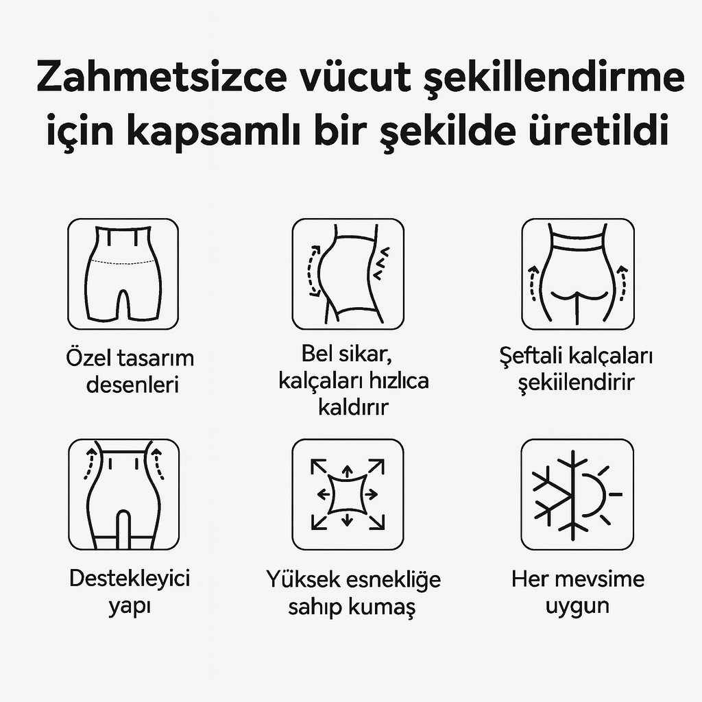 Ürünümüz yüksek esnekliğe sahip olsa da, en iyi sonuçları elde etmek için beden tablomuzu dikkatlice incelemenizi öneririz. Genellikle giydiğiniz bedeni tercih edebilirsiniz, ancak bel ve kalça ölçülerinizi alarak beden tablosundaki değerlerle karşılaştırmak, size en uygun seçimi yapmanızda yardımcı olacaktır. Daha sıkı bir etki için bir beden küçük, daha rahat bir kullanım için bir beden büyük tercih edebilirsiniz.